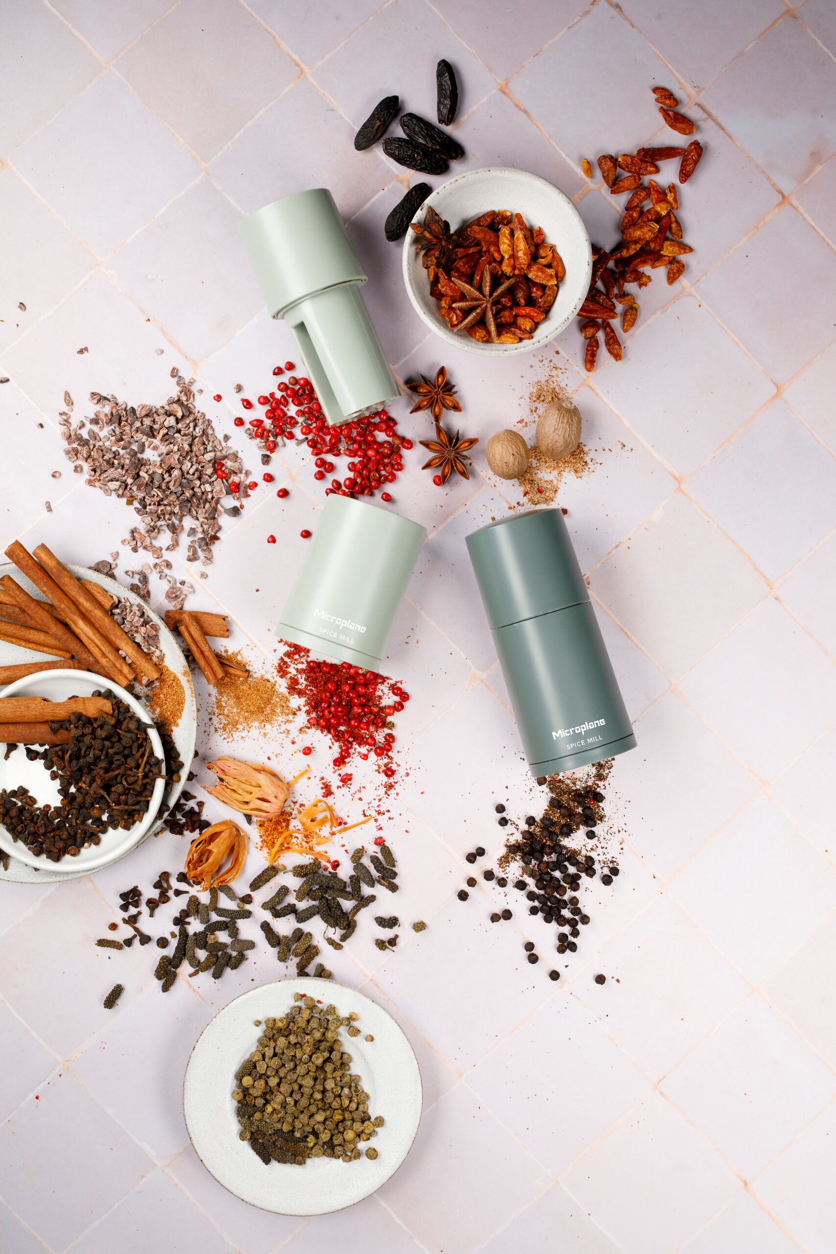An integrated compartment in the top also allows for light-protected storage of the spices for future use, and a secure silicone lid ensures clean and safe storage whether it’s on the counter or in a cupboard.