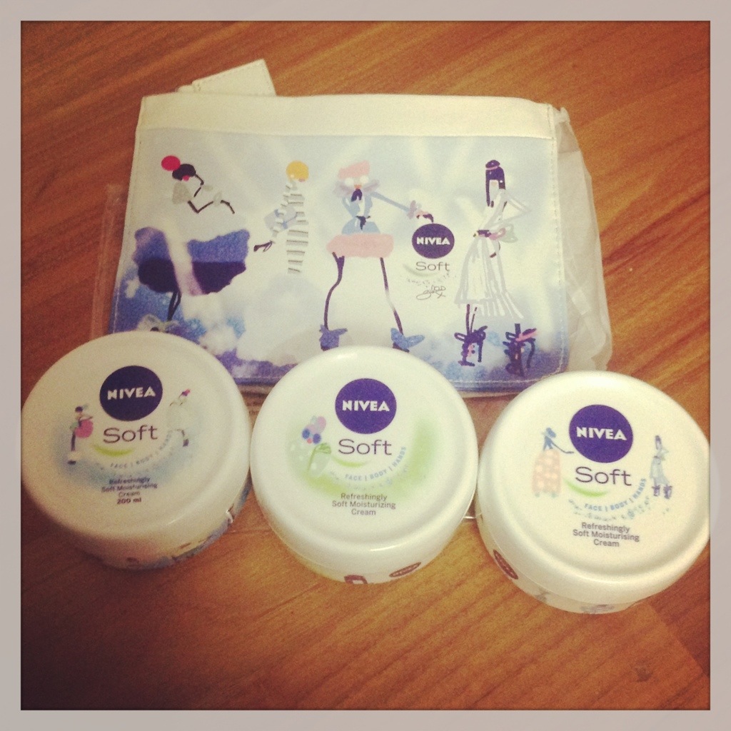 We are giving away this beautiful Giles Deacon Nivea Soft Pot Set. The set includes three soft pots designed by Giles and a zip up bag also designed by Giles.