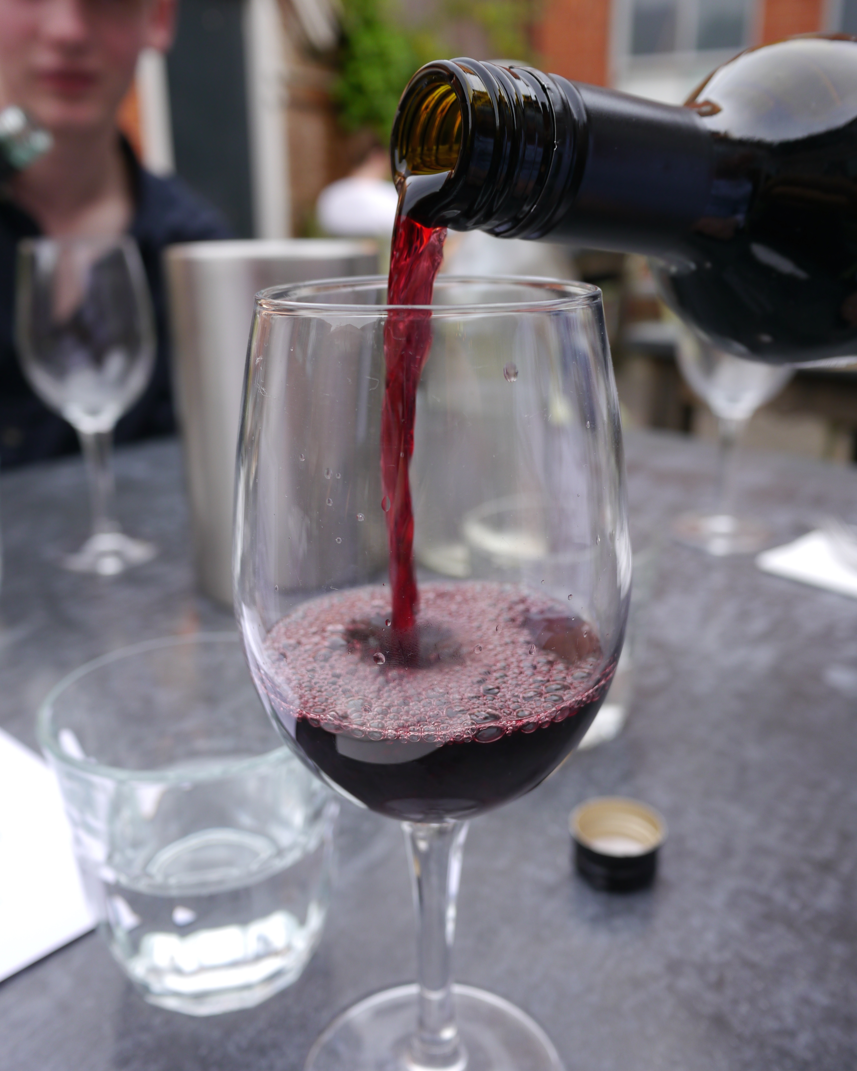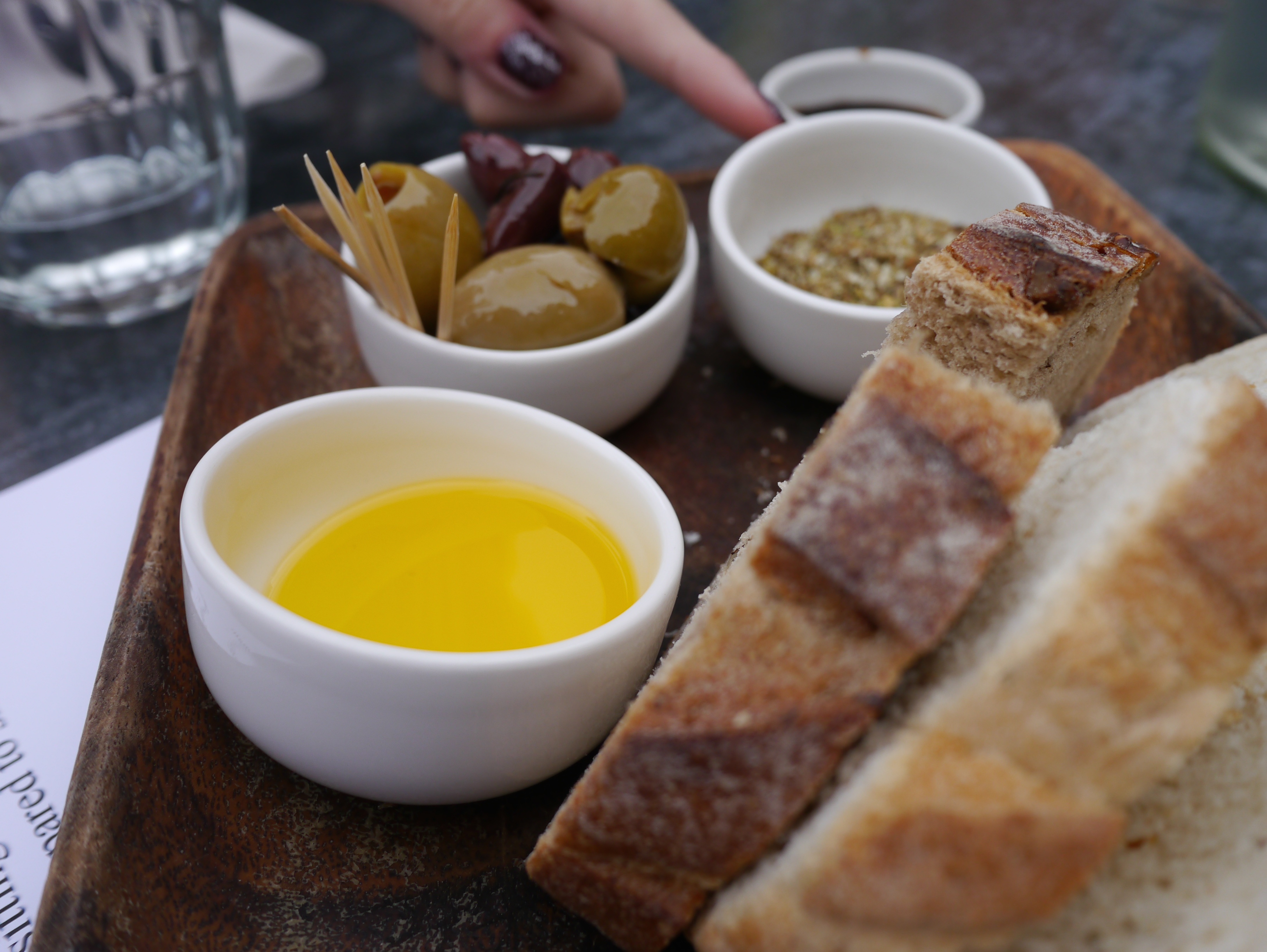 First we got stuck into the olives, bread and a delicious herb dip before ordering the main events. We drank a smooth red Shiraz that was just the right temperature, velvety and delightful and a crisp bottle of Pinot, perfect for the most balmy and humid of evenings we have had in a very long time. Siting outside in the quaint courtyard was just what this day called for.