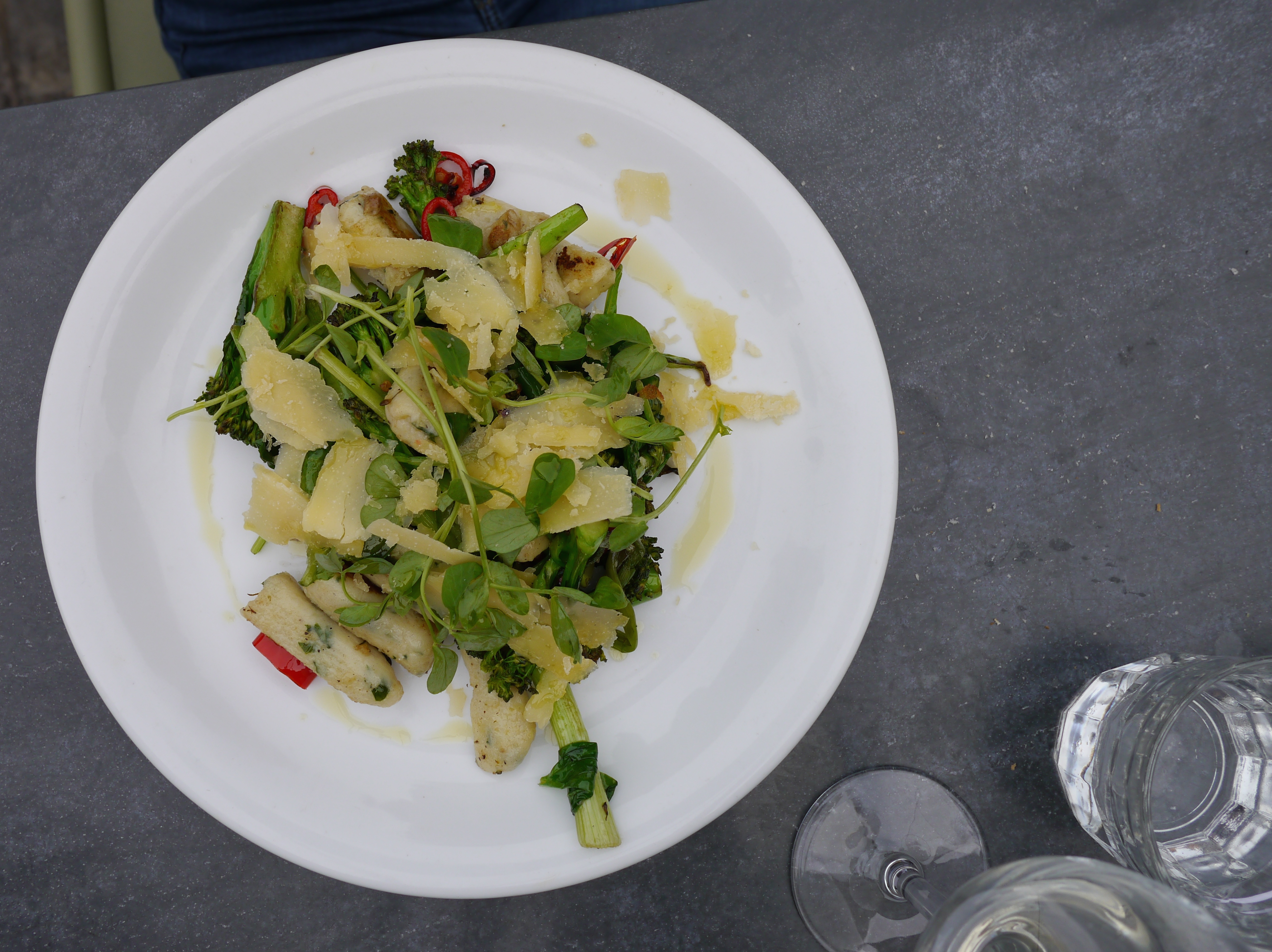 The vegetarian option was incredible. A Roasted garlic gnocchi dish with spring onions and baby red broccoli and chilli with lashings cheddar shavings on top.