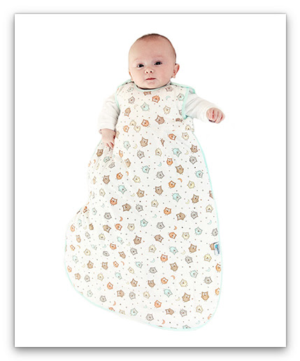 slumbersacThere are a number of reasons a baby will wake you up at night: hunger, a wet or dirty nappy, boredom. Thankfully with the invention of baby sleeping bags your baby kicking of their sheets and waking you up because they are cold is a thing of the past. Our first thought when we first opened the Slumbersac packaging was how big it seemed. It has buttons at the side for the arms to make sure your little one is securely in. There is also a zip that goes down the side and along the bottom. There are buttons that fasten at the top, making it easy to put baby in. The Slumbersac is easy to use and the fabric feels nice and soft. Made with 100% cotton and lined with 100% pure cotton, they are rigorously tested and can be both machine-washed and tumble-dried. The design is cute and baby likes it. We were sent the green owl one to review and we love the design.