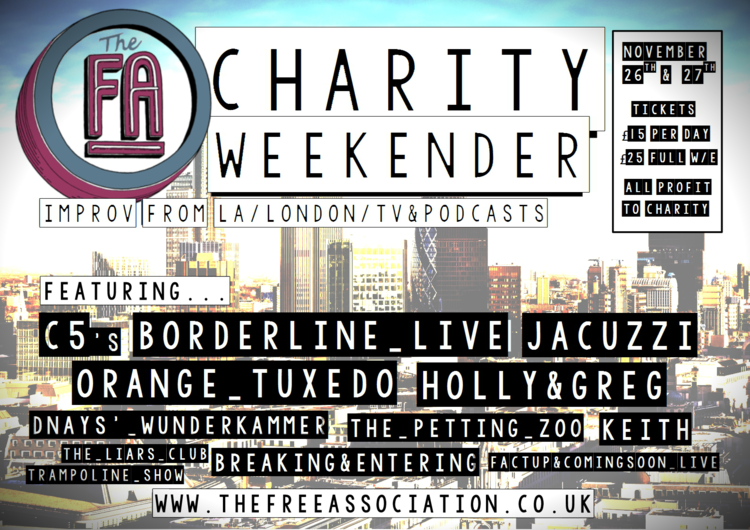 The FA always have events and shows coming up. Keep in touch with them via their website: www.thefreeassociation.co.uk. They are also on Facebook and, of course, Twitter @FAimprov … And I’m not making this up.