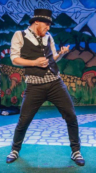 [The cast: Ben Hales, then Snow White, Scrooge and a Munchkin]