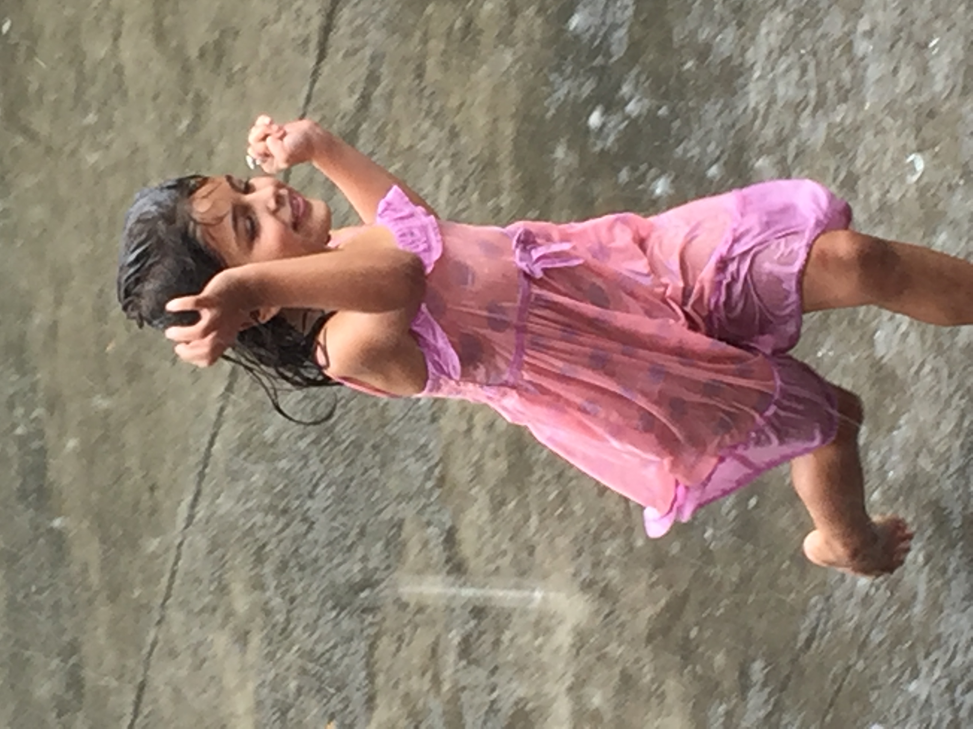 Even if it is not raining we have fountains, which come on for an hour every Saturday & Sunday evening, which she will happily substitute with unadulterated joy all over her face.