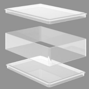 There is a base, a sleeve and a lid. Mine is rectangular so the biscuit base serves many. The sleeve locks into the base, and contains the dessert without it sticking to the sides. Basically it is a mould, in which you prepare your masterpiece, and then this goes into the fridge.