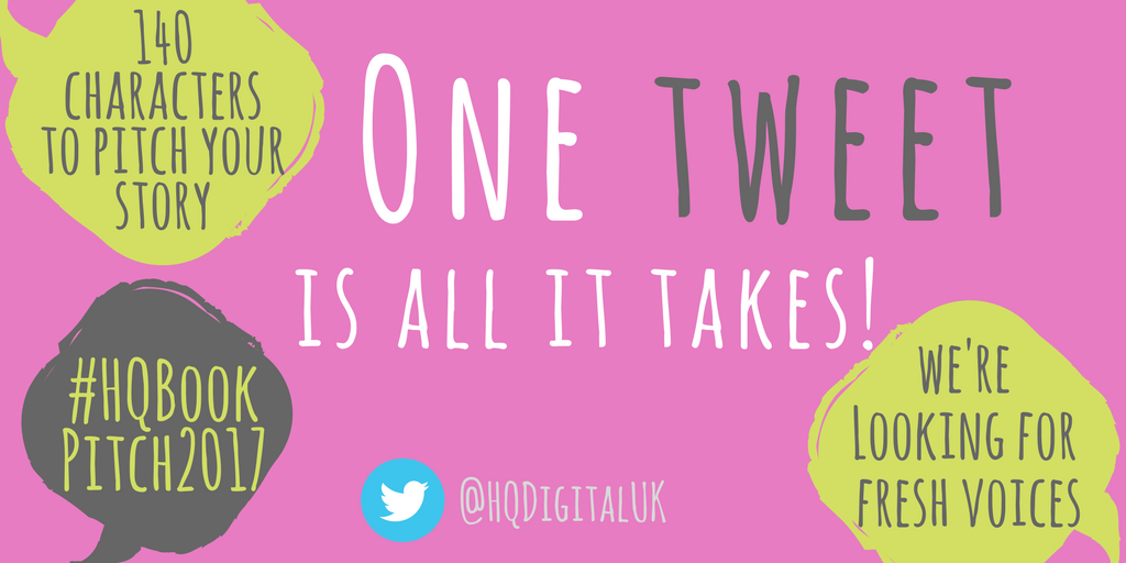 This week has shown me that two sentences is too long. Try pitching in 140 characters – actually 124 when you need to leave space for #HQBookPitch2017 – when Harper Collins’ HQ Digital division opened its virtual doors for tweeted pitches. I tried but failed to pack enough excitement into so few characters but again it was a great learning experience.
