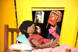 MONSTRO Theatre claim to be pioneers of the Puppet Musical, which is a bold claim. To me, this is a play with a few songs in it. There is a brilliant cast, playing all the varied characters, singing and animating all the puppets: Karina Garnett, Andrea Sadler and Phil Yarrow, showing that, overall, this is a performers’ piece.