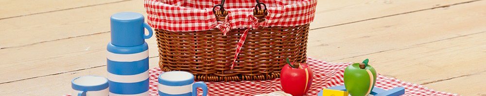 The Frost toddler loves this picnic basket which comes with gingham fabric, a gingham blanket and wooden food. The sweet wicker basket is lined in gingham fabric and contains a selection of wooden food including cakes, fruit and bread, as well as plates and cups to dish up the picnic. It also has a little wooden knife so children can cut up the food. Perfect for hours of imaginative play.