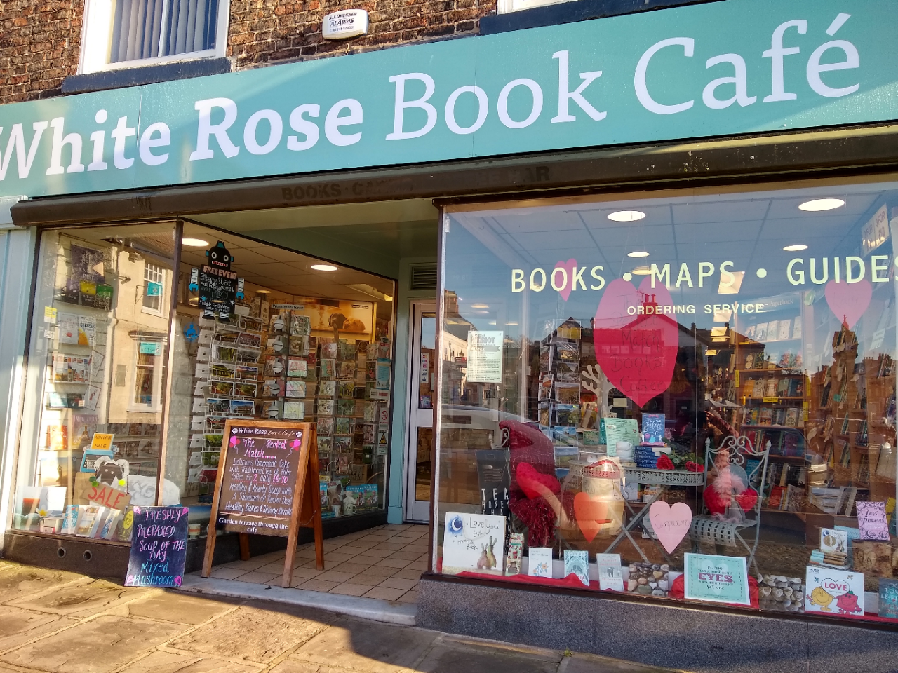 One of my favourite places in Thirsk, and something of a rarity these days – is a thriving independent bookshop, one which works hard to achieve its award winning success. The White Rose BookCafe sells not only books, but gives you a chance to put your feet up, sip a coffee and sample good food, then you can go back to browsing. But let’s not stop there, the owners and staff have fingers in many bookish pies – arranging talks which attract fabulously popular authors who like to chat to their readers and a super-fast book dispatch service, and… Well, let’s just have a closer look:
