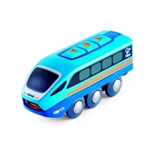The train has a magnetic coupling, so carriages and trucks from other sets can be linked up and it runs on standard wooden train tracks, thus can be integrated with your child’s existing toys. It also runs quite happily along a wooden floor.