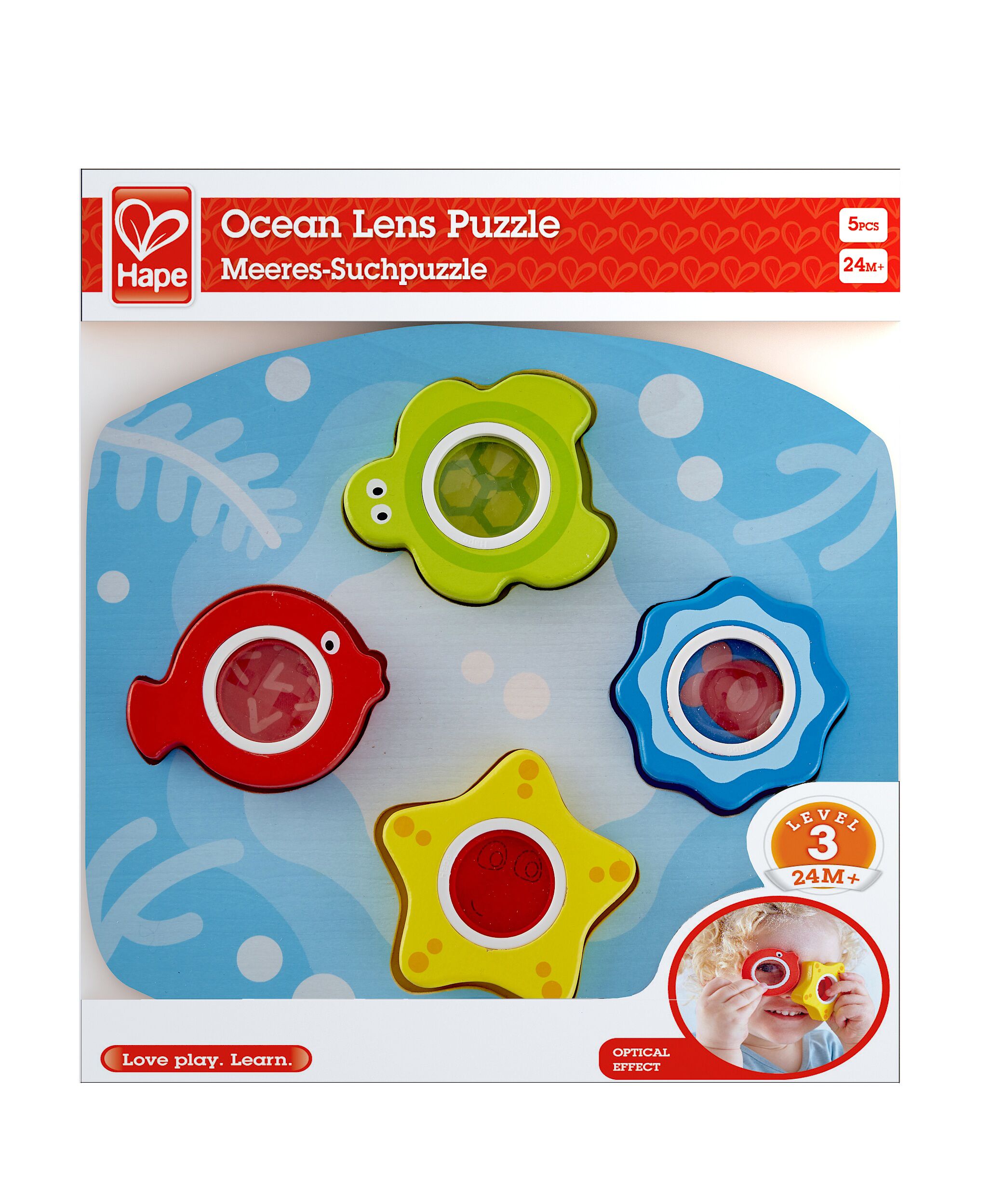 This creative puzzle features four sea creatures, each with their own special lens to help you see what’s hiding under the deep blue sea. Use each animal as a looking glass to identify the shapes hiding underneath their resting place. As someone who snorkels when given a warm blue sea I found it an intriguing concept. As did the 20 month old I was sharing it with. It led to all sort of conversations, and books were brought to me to show me fish.
