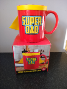 - Ceramic mug emblazoned with ‘Super Dad’.