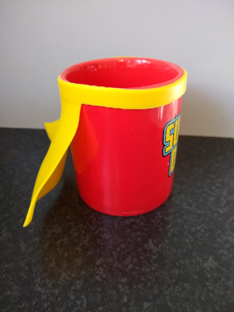 Sadly for Dad it’s hand wash only, but when it’s his turn to do the dishes he can be extra careful with it. Neither can he heat up his Super Dad mug of coffee in the microwave.