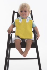 Talking of my grandson, if your little one’s teeth are causing them to dribble too, you may be interested in the Bclip. Like many of the cleverest designs, simplicity is the key. It’s a moulded strip of food-grade rubber, with a large attractive clip on each end, which fits around the back of your child’s neck – that’s it. You can clip any piece of fabric or even paper to the clips, creating an instant bib or apron. Select the size and shape – a tea towel, a large piece of drawing paper, a paper serviette, the choice is all yours.