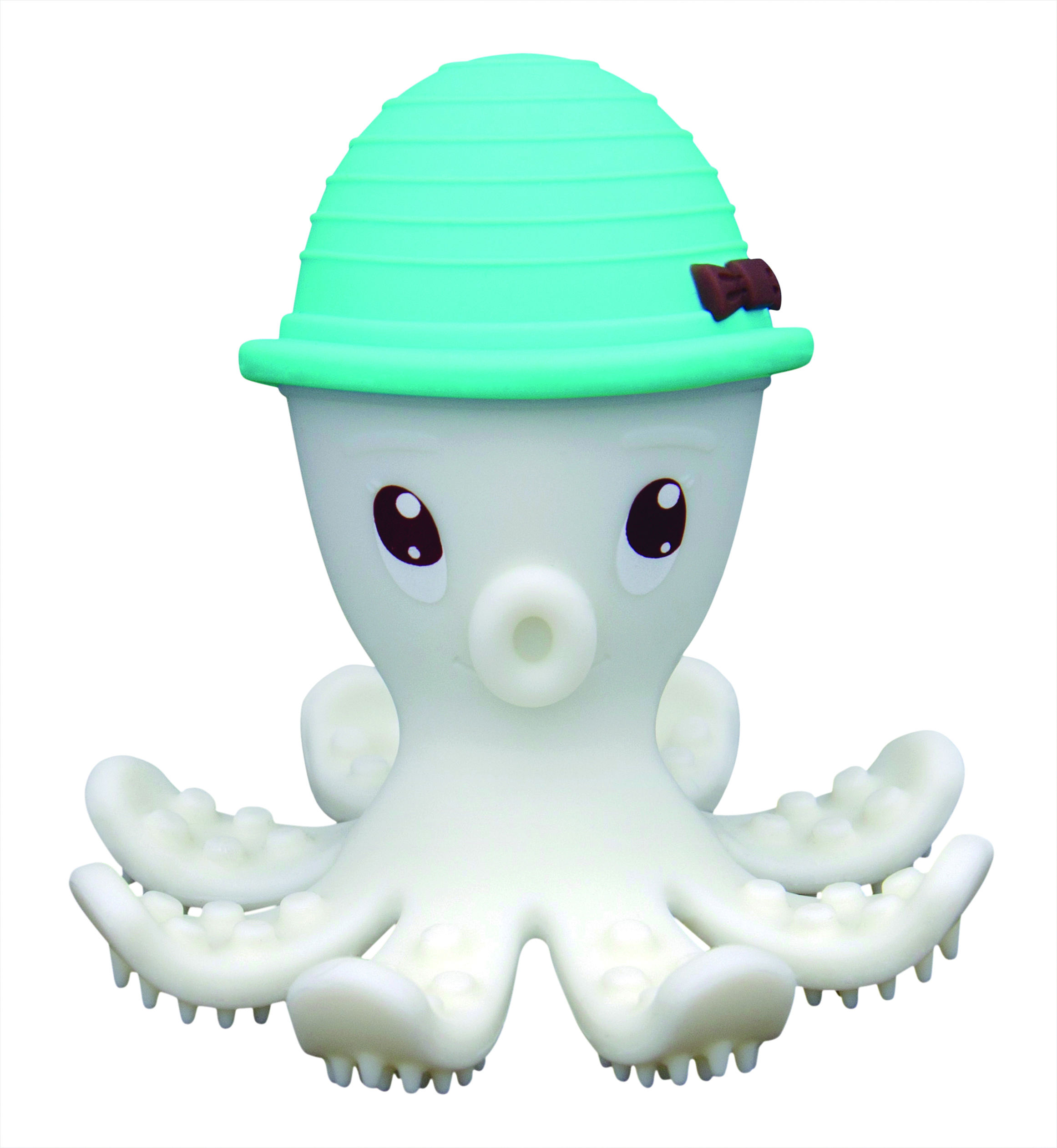 I’m a sucker for cute baby toys, and Bonnie the Octopus Teether (which comes with its own suckers) is irresistible.  It’s very light, and shaped to make it easy for small babies to grab and, importantly, to keep hold.  The eight tentacles, are covered in firm suckers (see, I told you) and have soft spikes underneath, which provide an interesting texture for Baby to chew, and to help with teething and sore gums – the tentacles reach the back teeth too which is a bonus. The sweet little face is topped by a hat in a colour of your choice – pink, yellow, blue, orange or lilac. And the hat isn’t just ornamental either – it has soft ridges for Baby to chew on too.