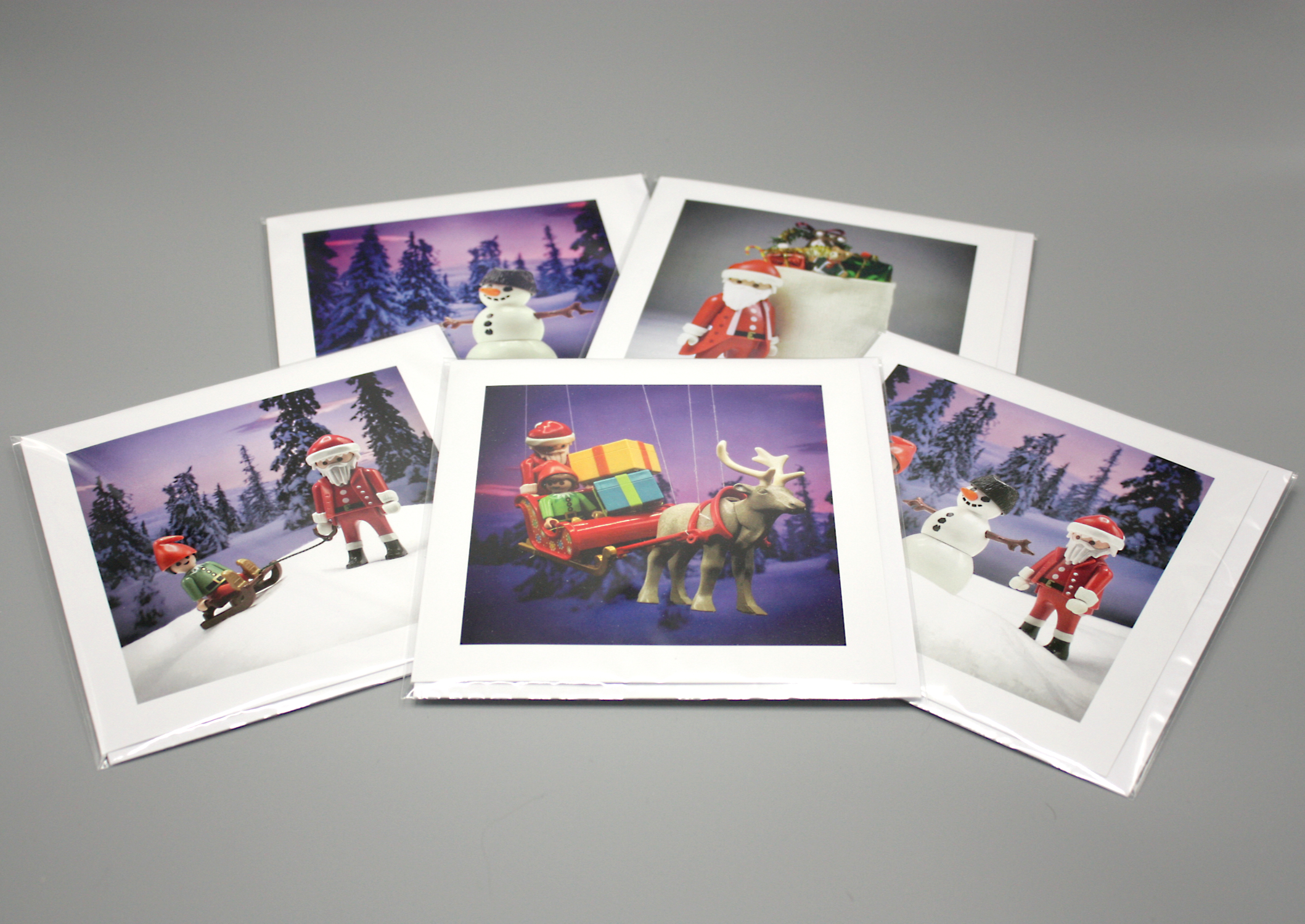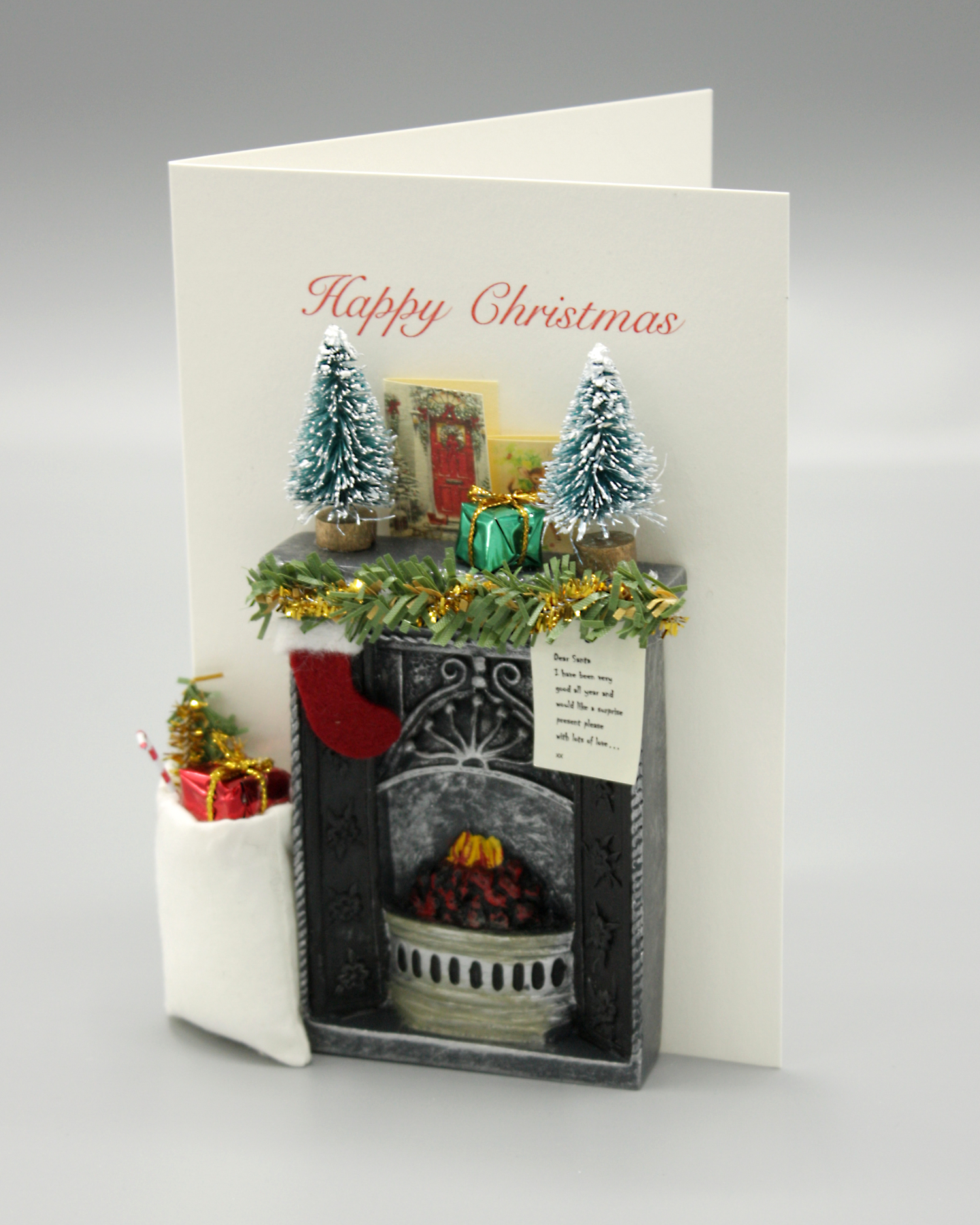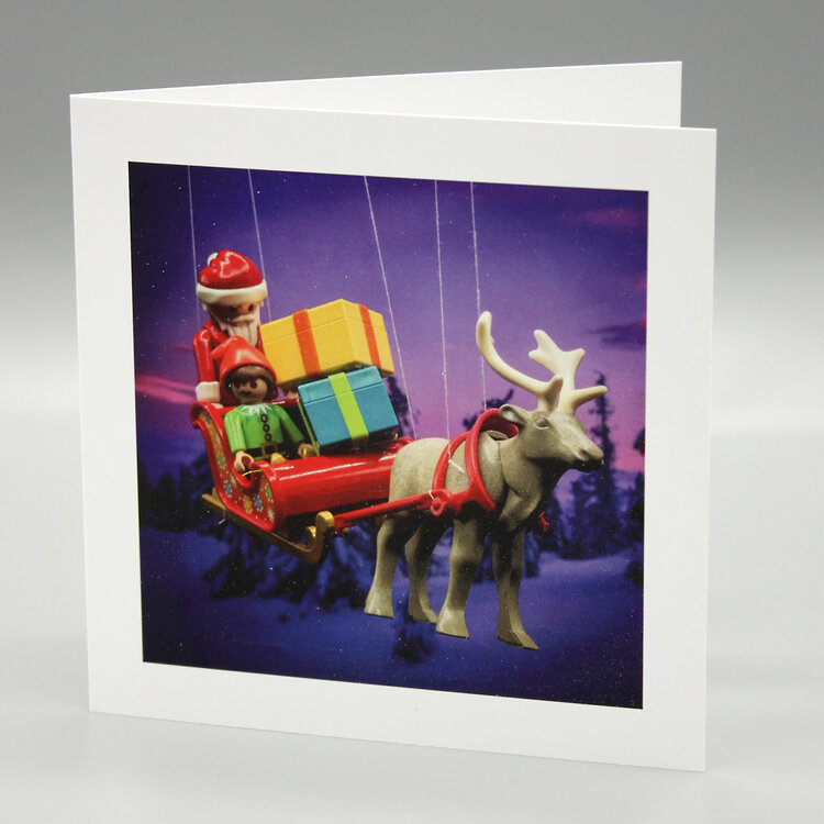 Karrie Barron Christmas cards, where the recipient’s names can be written on the toy sacks, and messages put on the front on banners, or bouquet tags and also printed inside. In addition