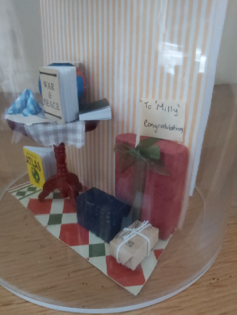 Karrie Barron, a tweak here, one there, my name on a card within the tableau, a message inside. It was so amazing that for someone who never stops talking I was silent for quite 10 seconds, because I was so delighted. I have kept the card down the years, under a glass dome. Following Michael’s example I have sent
