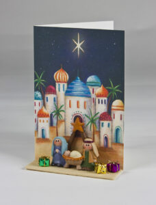Karrie Barron can send them direct to the recipients, if you wish. But this personalized approach isn’t confined to Christmas cards, it is available on the whole card range all year round. It really is such a totally special gift, or so I found. The cards are more robust than they might seem, but nonetheless are safely packed in tissue paper and placed in a white box, complete with ribbon, and then another box for posting. I chose the Nativity scene for the children mine are destined for – (just ordered) all personalized.