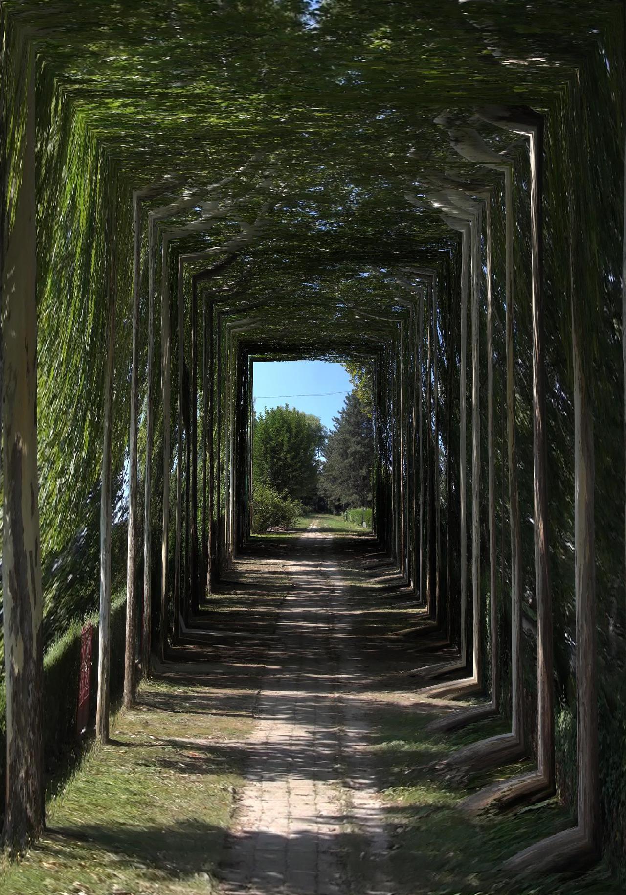 Another photomontage work that I found myself drawn to, was another Andras Zalavari photo montage, ‘Plane-tree Allée II’. This time with verdant trees, forming a tunnel and throwing playful shadows on the ground, drawing the eye to the mysterious garden beyond.