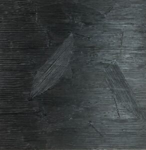 Barbara Nagy, Floating shapes I and II, painted engraved wood captivated me for the longest time, the etched grooves, black on black, changed perspective with every movement that I made, as the light played effectively on the art.