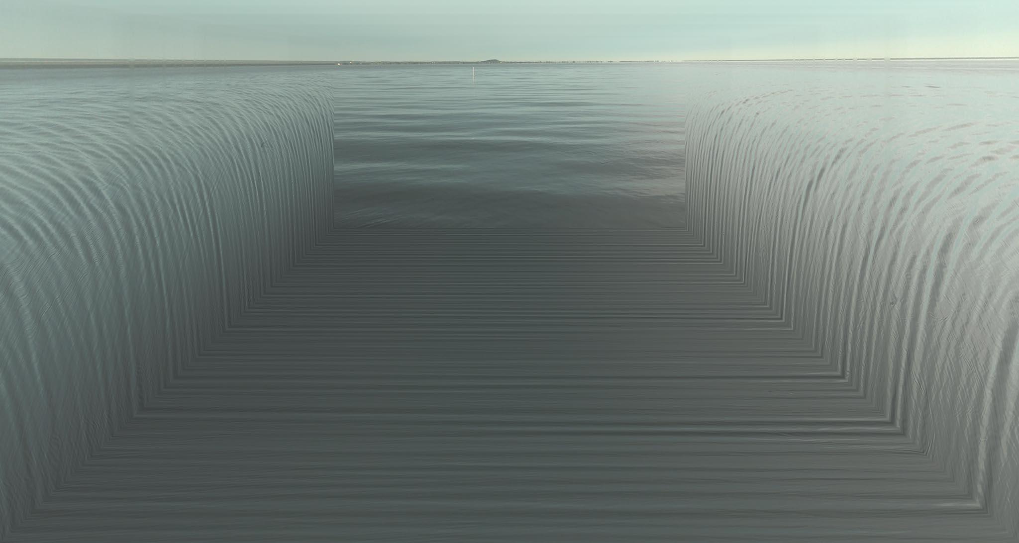 My favourite work (and yes, I know that a reviewer shouldn’t have favourites) has to be, ‘Balaton IV,’ a stunning work by Andras Zalavari, the youngest artist in this exhibition. The work, a photomontage, shows water from different perspectives, drawing the viewer’s eye both to the centre of the picture and to the far horizon.