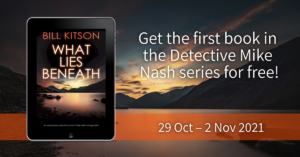 WHAT LIES BENEATH is the first novel in Bill Kitson’s Detective Mike Nash series. CUT-THROAT, book 13 in the series, is now on pre-order — hurry hurry.