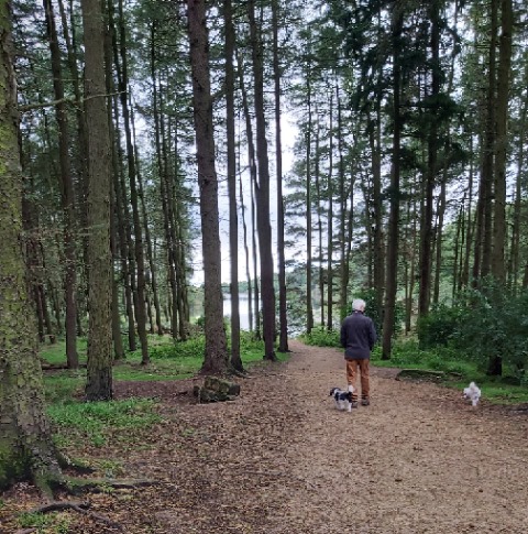 They walked through the woods. It was quiet, and lots of things to sniff, for the dogs of course. Not Margaret and Dick.