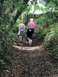 Then a nice walk with the dogs, and the rellies. Dick and Margaret walked a little ahead at one point. Margaret told Dick of the taxi ride from Newcastle to Bowness. where she and her group would start their Hadrian’s Wall Walk. It was a big taxi and took the six walkers, the taxi driver (of course) and the guide.