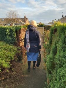 Half a mile further on clippetty clop Margaret realised she had Norah Batty wrinkles at her ankles, and very warm legs. Why had she worn her new fleecy tights, which felt very much as though they were slip sliding further down with every step? In fact, why had she worn her lined mac?