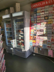 You need a birthday card? There, over to the right, just along from the newspapers, and we have loyalty cards for well – cards, ‘There you go,’ Jack says. Stamp goes the -well – stamper. When full, we have a free card. So peruse the great choice carefully. But don’t take up too much room for it is here we queue for the Post Office part. The queue gives one time to check the padded envelopes, and gather up cellotape from the shelves to your right, and on the other side; biscuits and cakes. And there they are – Grandma Wild’s Shortbread biscuits – again calorie free Dick has decided because he eats LOTS.