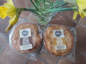 Here are the fridge cabinets – independent cheese makers? Oh, yes please, and there is wine for the evening, and in the cool cabinet behind which Jack is waiting are Jones’s deep pies. My friends, deep means deep. Chunky steak, and chunky chicken means chunky. The best we’ve ever tasted, yes really. so home they come.