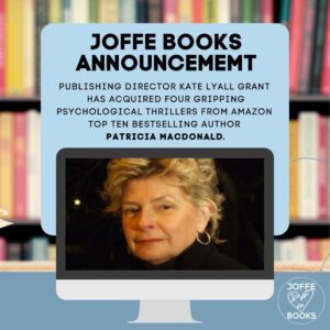 Joffe announces  the acquisition of four gripping psychological thrillers from Amazon Top Ten bestselling author Patricia MacDonald, author of From Cradle to Grave, Cast Into Doubt, and Missing Child. They will be sharing them with us soon.  Can’t wait.
