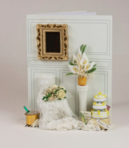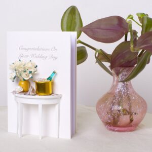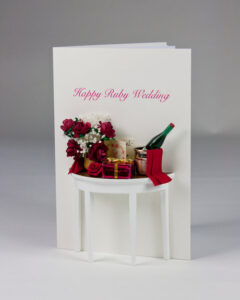 How about an acclaimed Karrie Barron personalised wedding card – a miniature world, one to keep until the Ruby wedding anniversary