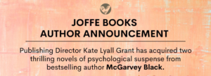Joffe Books Publishing Director Kate Lyall Grant has signed two novels from bestselling author McGarvey Black, who is joining Joffe Books with two psychological thrillers.