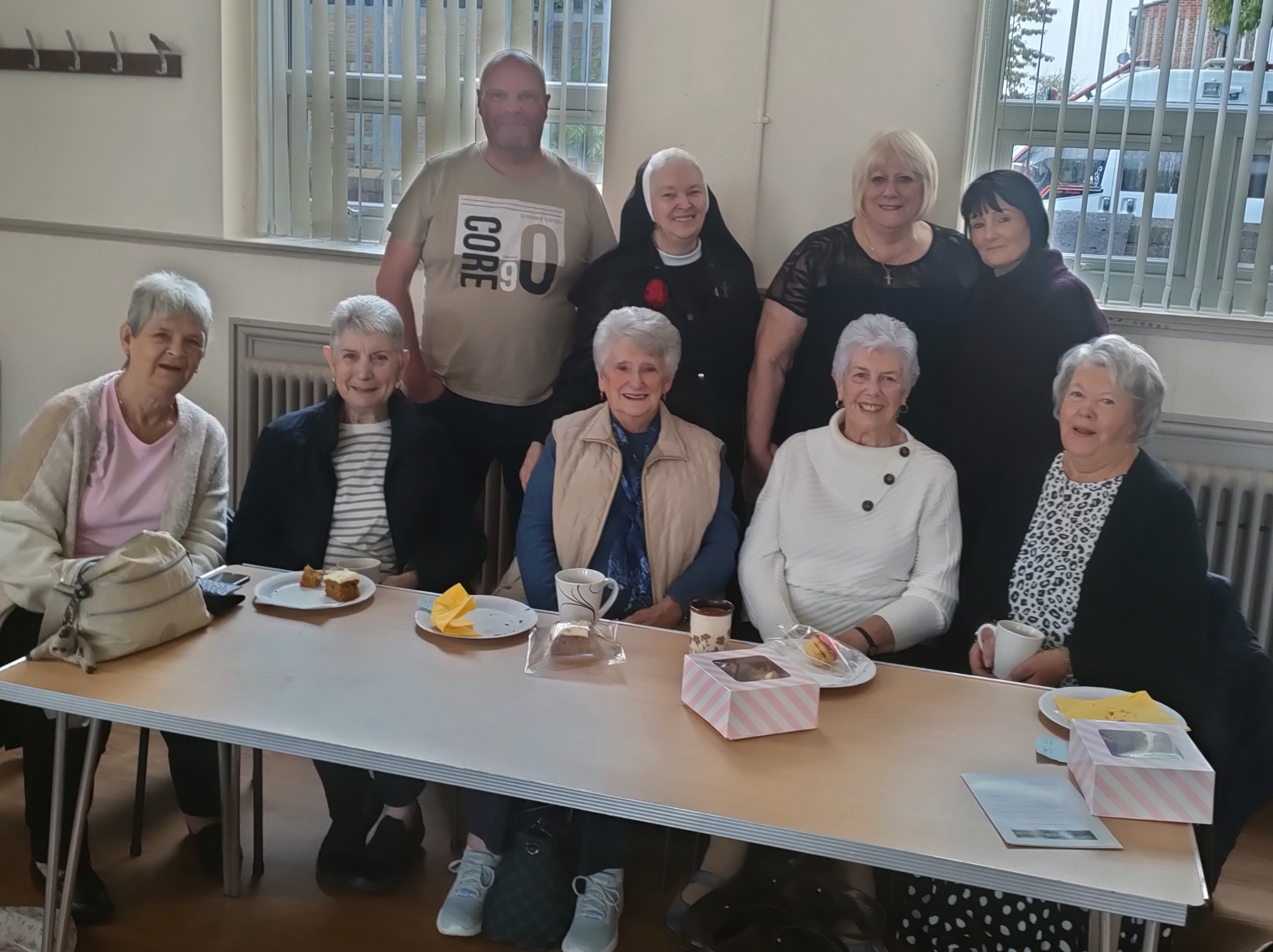 Deb and Linda baked fabulous cakes, and Sister Mary accepted the team’s invitation to join us ( In Marion’s words ‘I adore having her here, she an Earth Angel and very special to us all) she will be delighted at all the 40 hats people have knitted for her beloved Seafarers.