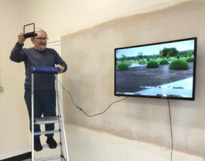 Bob – he with the two pairs of red shoes – just saying – mounted the Smart Television on the newly plastered dried out wall, while Pauline the treasurer returned from what seemed to Marion to be her 100th holiday this year (meow Marion – Frost will tell Pauline you said that, so very there) and organised the licence. Davey from Equan is arranging an aerial and frankly the team really don’t know what they would do without such fabulous people.
