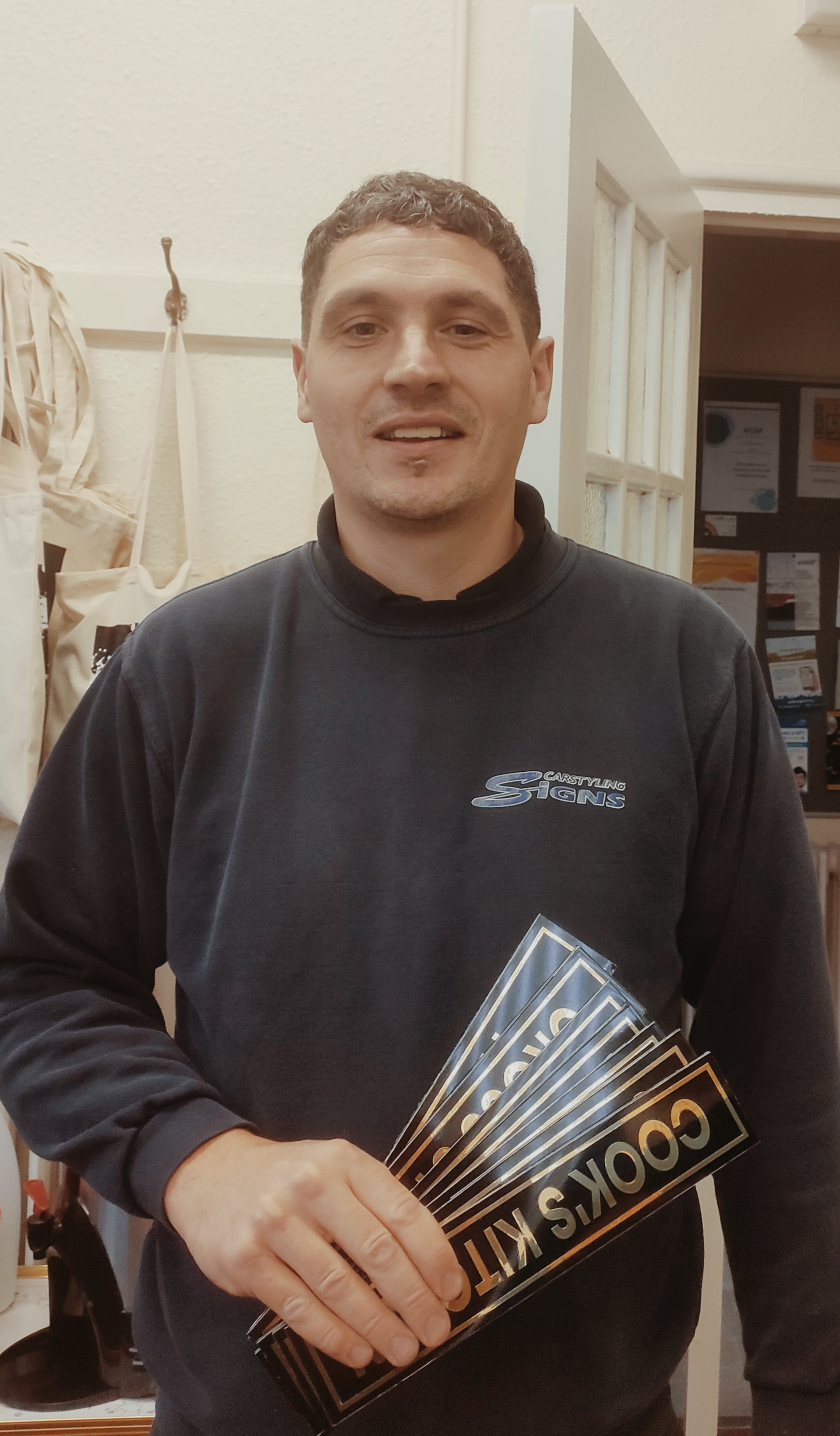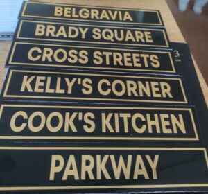 Hurrah Hurrah, Brian rang to tell Marion that Wayne would be calling in with the door signs and they are so great that Marion thought how lovely it would be to get him to make a new sign for the wall outside. So naturally she lost no time in contacting Margaret at the magazine, with the answer:: ‘Whoop whoop done deal Margaret, I keep telling you there is no blood like Brady Blood, I bet you are so pleased that you share this glorious nectar running through your veins. These signs are fantastic and made with love and pride. Oops, we missed the E out of Kelley, soon to be rectified and the nice gentleman who brought it to our attention is going to pay for the new signs.’