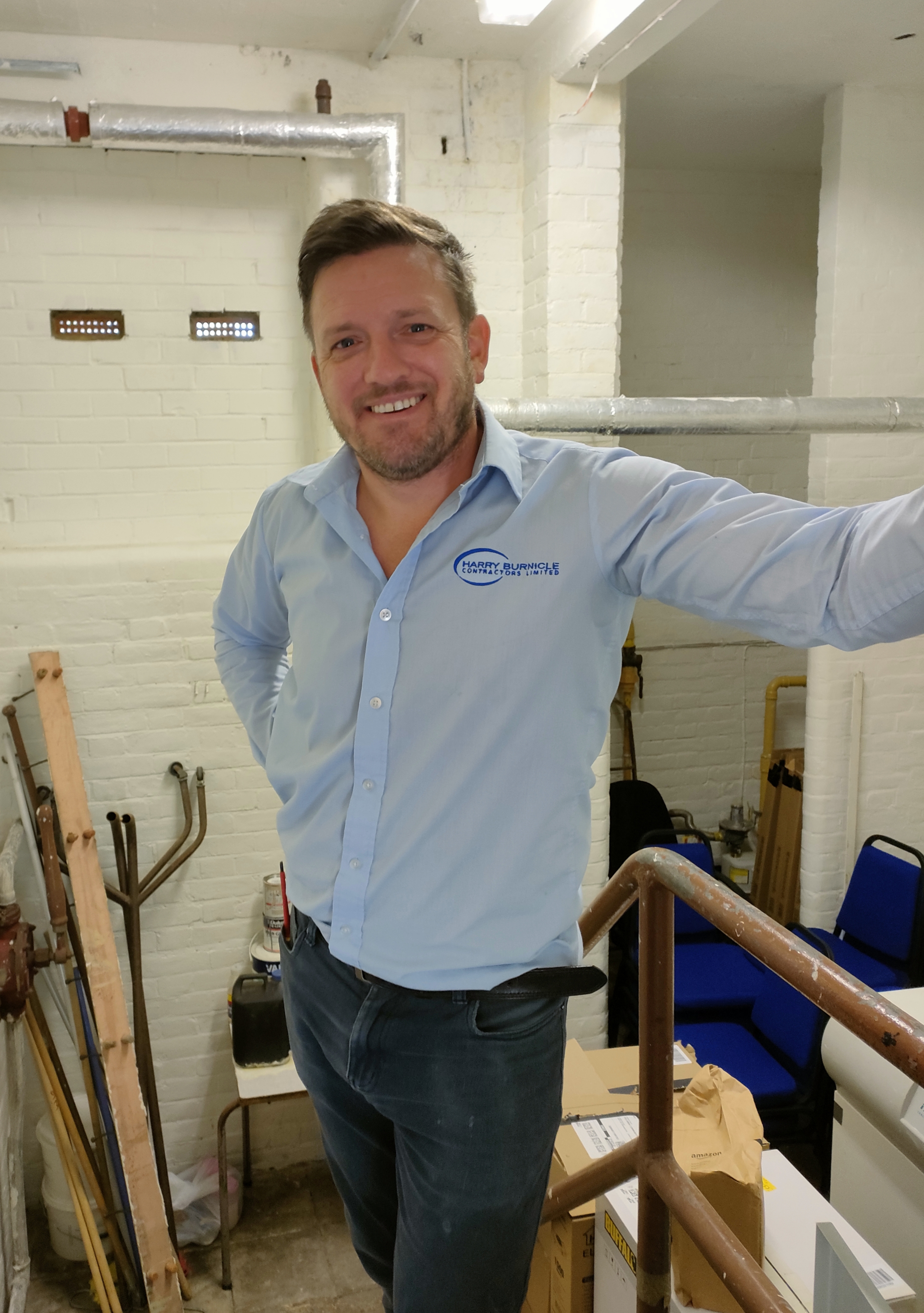 Chris from Harry Burnicle Contractors Ltd arrived to do the electrical check on the building. ‘We must ensure everyone safety at all times.’ Marion said. Mind you, they had coffee and a chat on his arrival and ‘he agreed to have his photograph taken for the beloved Frost Magazine.’