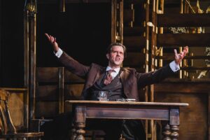As Luke Barton and Joseph Derrington (aka Holmes and Watson) carry the murder mystery along with a serious believability, they also play other characters in this to and fro play. There are many flashbacks to a previous story in America, switching the setting from a Victorian stately home to a Pennsylvanian town that is being run by a Peaky Blinders style mob. Back and forth we tumble as all the pieces of Sherlock’s jigsaw fall into place…