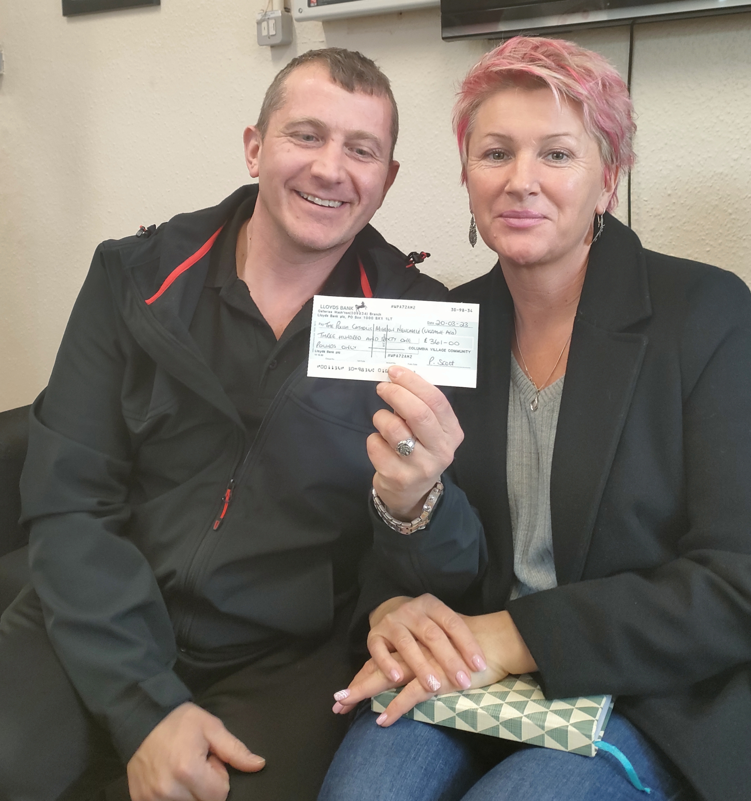 Total money raised for the Ukrainian appeal from the food hamper raffle was £361 and it was handed over to Kam and his wife Regina from the Polish Centre and will be put to good use. Thanks go to everyone who donated food and bought tickets. And thanks also go to all those donated baby wool, which was collected and soon knitted items will be on their way to the premature baby unit.