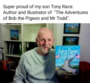 Brady Square’s very own lad, Brian Race, is cock – a – hoop and overflowing with pride as his son Tony has just written and illustrated a book “The adventures of BOB the pigeon and Mr Todd”.