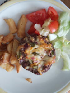 I also oven baked the tempting Mozzella,Pickle and Beef Truffle. Had I been cooking for someone other than Dick, who I can’t hoodwink, I would have said I’d been slaving for hours in the kitchen, and I did hope he enjoyed it. Dick did enjoy it, knowing full well it was from Frank’s range of prepared foods. At Christmas we had a rib of beef which had the flavour that one remembers from long ago; well kept, high quality. The sausages… Well, go and have a look.