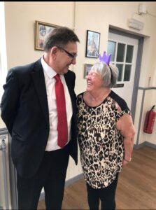 David Snowdon, re-elected councillor and CCA’s Dianne’s lovely hubby, visited the Friday coffee morning and Edith Bradley the Queen for the day, wasted no time in congratulating him, echoing the the team’s sentiments.