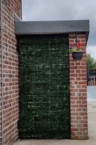 Marion and Red Shoes Bob, though it really should be Blue Shoes Bob now, went shopping for trellis to hang at the entrance to the Air Raid shelter, and came away with expanding pine trellis which fits perfectly and looks great. The Air Raid shelter is well and truly camouflaged.