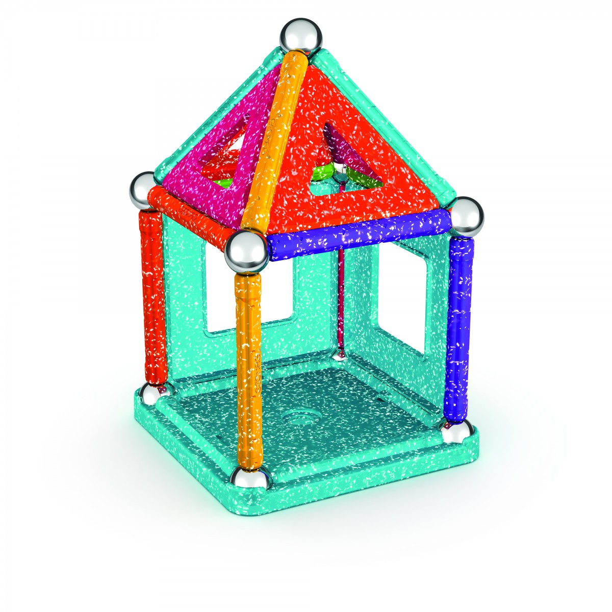 The Geomag Classic 100% Recycled line dedicated to everyone who wants to play with an explosion of colors delights even the most demanding of creative spirits. The super stylish Glitter line is dedicated to fans of sparkly colours! What’s more, the practical storage boxes to keep the rods and spheres in neatly, as well as always with you, are also made of recycled plastic. The Glitter 35-piece set includes 12 spheres, 12 magnetic rods, 10 panels and 1 base.