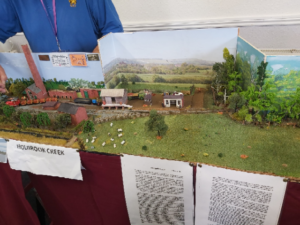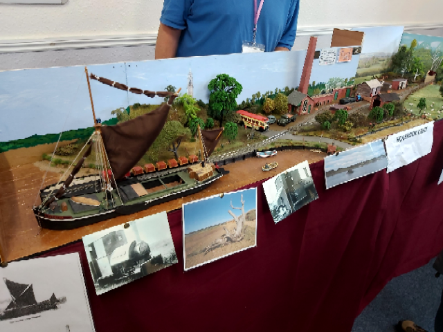 So a quick look at two of my my favourite exhibits: Stand No 22: 009 Narrow Gauge – Holbrook Creek created by Phil Ashlee which I found extraordinarily evocative, and in which one could see a clear narrative. Having said that, a narrative was alive and well in all the exhibits, and, like Holbrook Creek, each was supported by attached notes. What I found extraordinary in each and every one was the detail. In the case of Holbrook Creek – the models, houses, boats, the water…