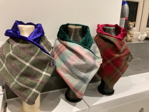 Jessica continues, ‘As the season changes my creative flow becomes one of fabrics. During these colder months I can be found buried under a sewing machine, hand-making unique scarves, headbands, neck warmers, and other boutique items. A collaboration of tweeds, fleece, and the softest velvets make my accessories really special and I’m proud to be at the helm of their creation.‘