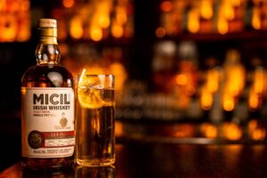 Micil Inverin Small Batch – a five-part peated blend with a triple cask finish, it embodies the fruity spice of the finest Connemara ‘fuisce’ and the peat smoke of the illicit stills and kilns of Inverin. Finished in recharred ex-bourbon quarter casks, Pedro Ximenez casks & Micil peated poitín octaves, imparting a hint of sweet, smoky turf from the family land in Connemara.