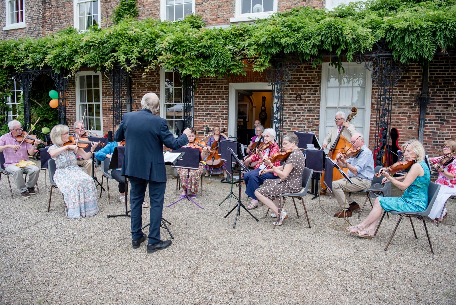 Library image of the recent Strings Attached Ensemble at The Gathering in the Garden, Thirsk Hall in aid of Herriot Hospice Homecare. The evening raised over £5000 for the Hospice.