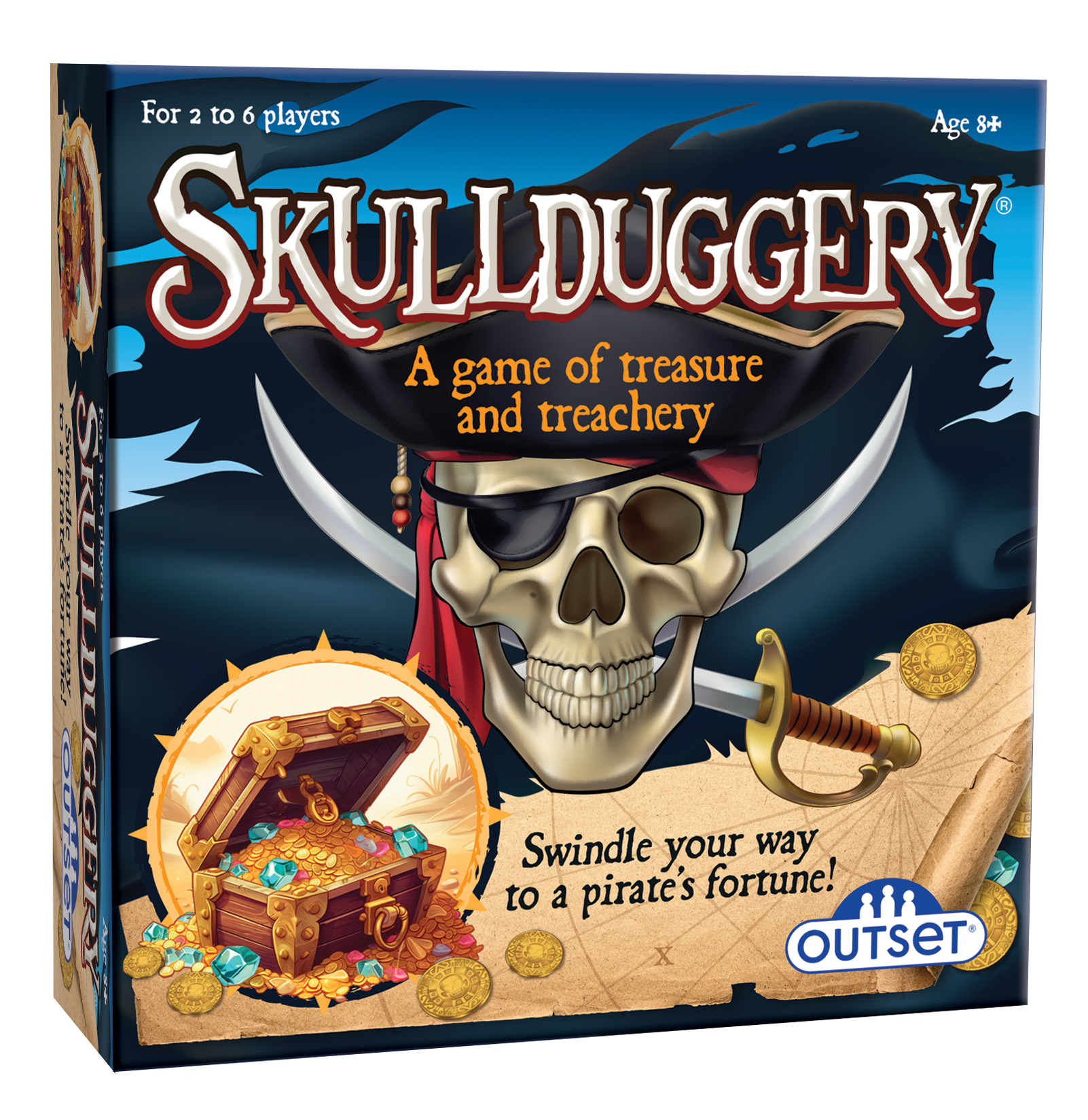 I’m constantly looking out for games to occupy my young grandkids. My challenge is finding ones they’ll enjoy but which I still have at least a chance of winning. Frankly this rules out most video games and quite a few board games these days. However I’ve just struck lucky with Skullduggery from Cheatwell.